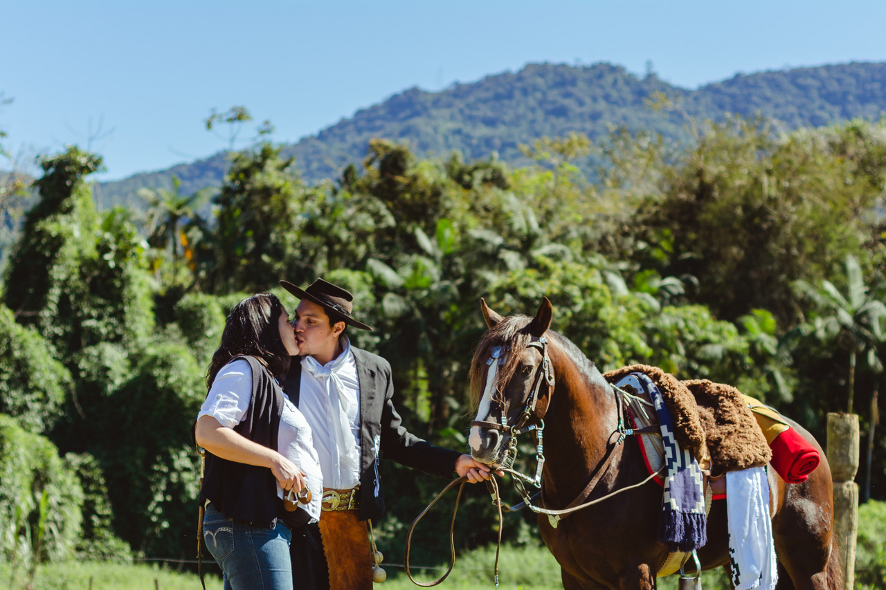 Junto dos animais, em meio a natureza... o campo é aquele lugar xodózinho de alguns casais. Muitas vezes contando a história no sitio da família carregando assim muito sentimento às fotos.